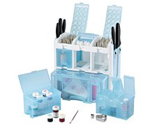 - Sturdy plastic design; semi-transparent blue containers for easy-view access
